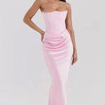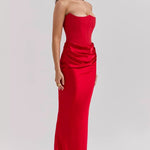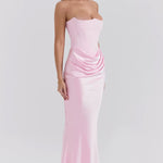 Sukienka długa bez ramiączek z drapowaniem to klasyk w nowoczesnym wydaniu, który zawsze zachwyca.